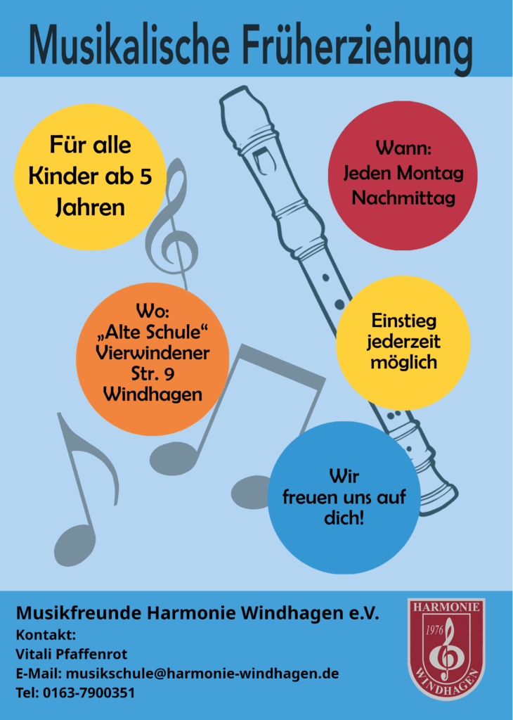 Wir konnten Herrn Peter Lerch für den Blockflötenunterricht ab 5 Jahren gewinnen. Er unterrichtet immer montagsnachmittags in der Alten Schule in Windhagen.